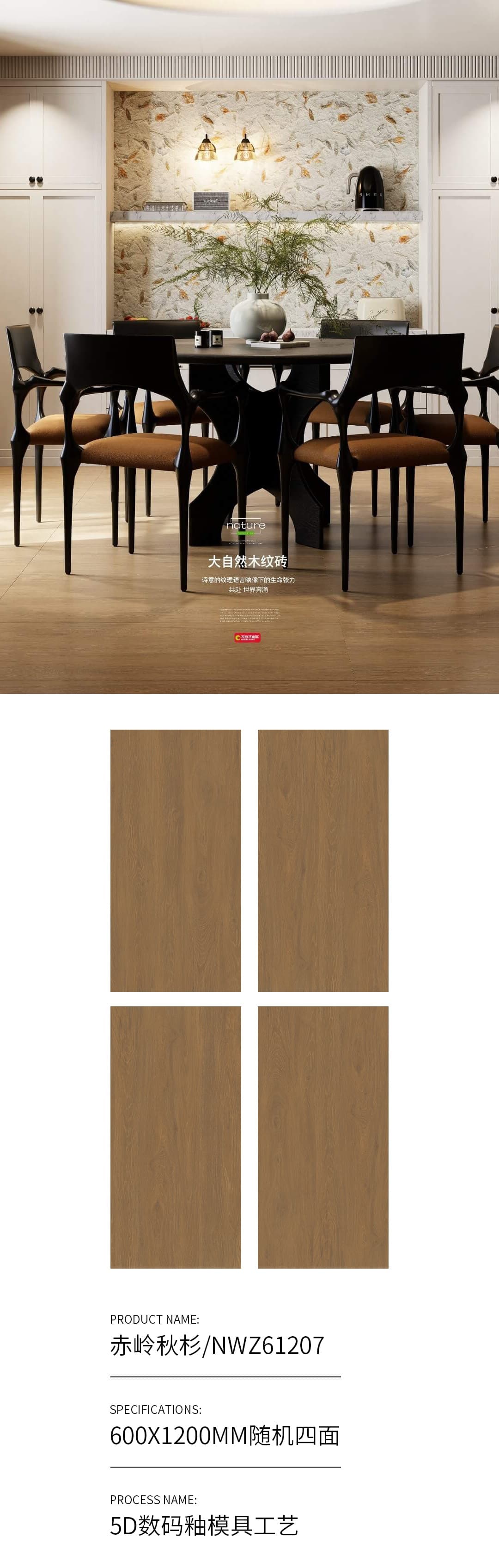 | 產(chǎn)品特性 | 表面柔和,防污效果強(qiáng),防滑R10指標(biāo)高,抗折強(qiáng)度好 |